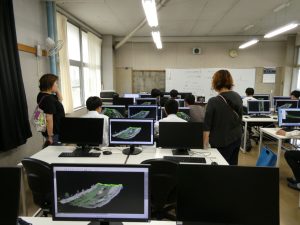 基準点測量、路線測量の他に、本年度はLand Formsというソフトを使って、三次元点群データの編集等も行いました。